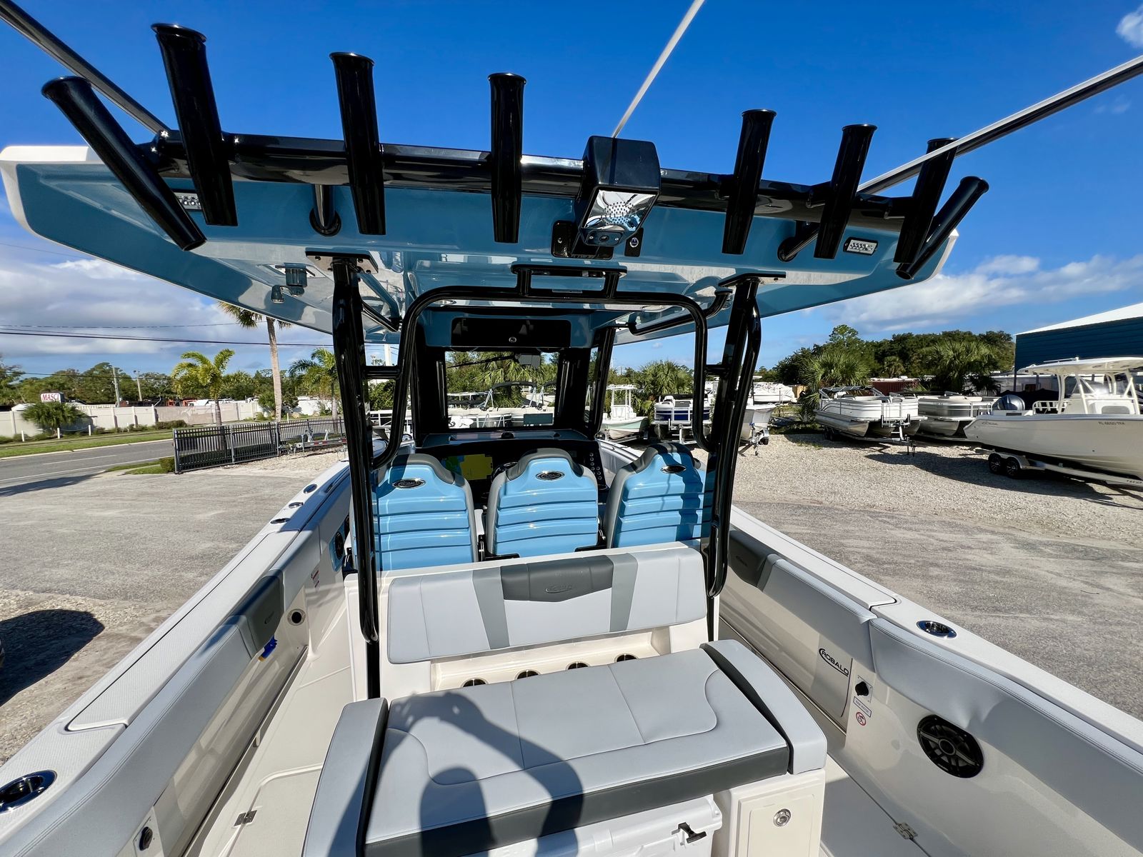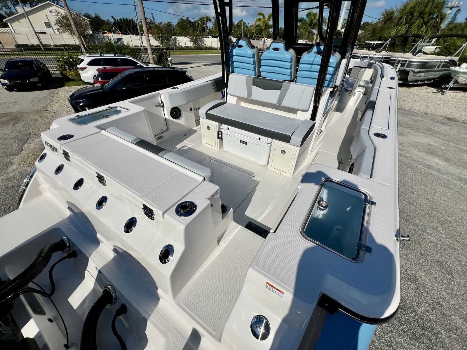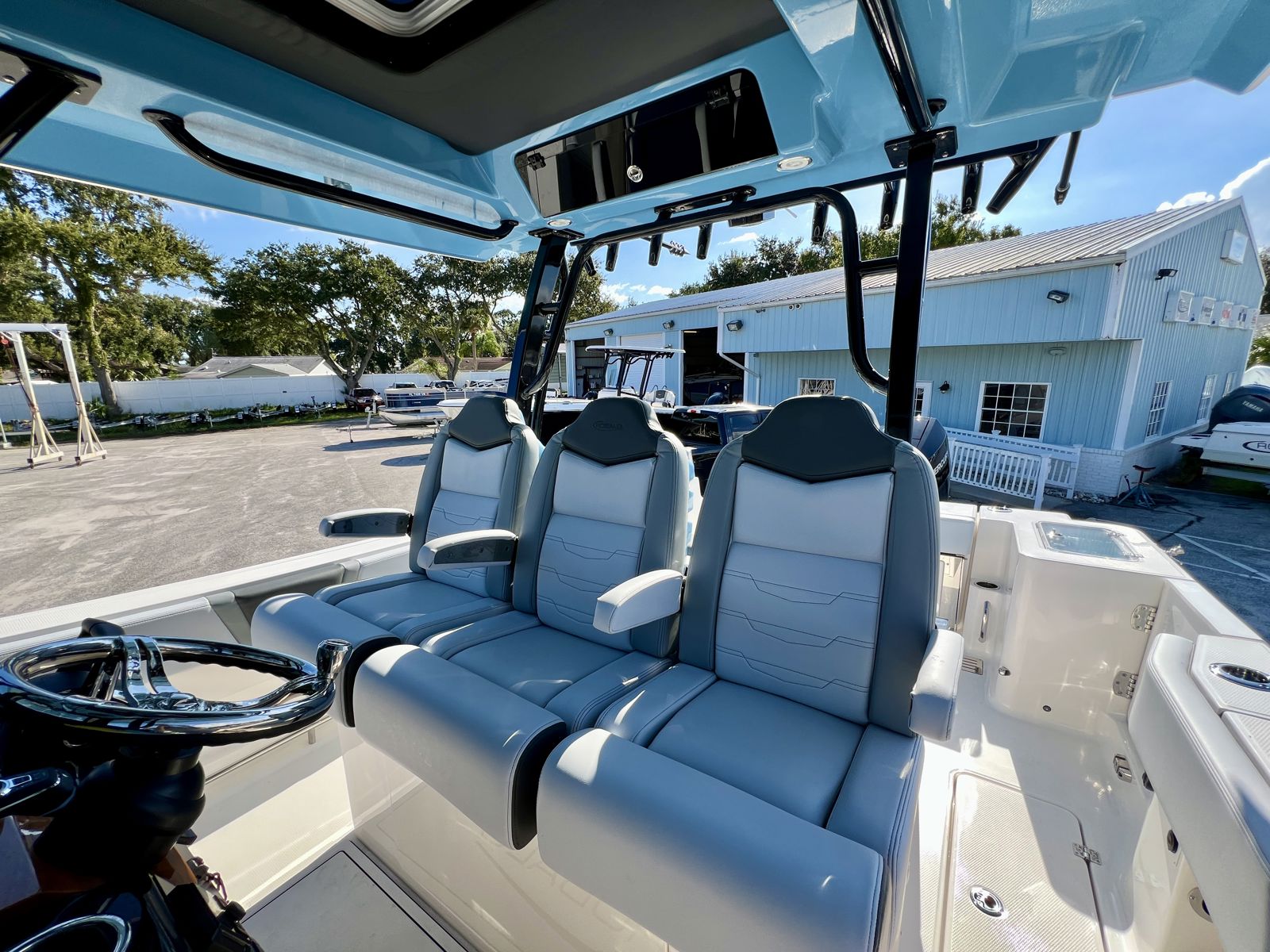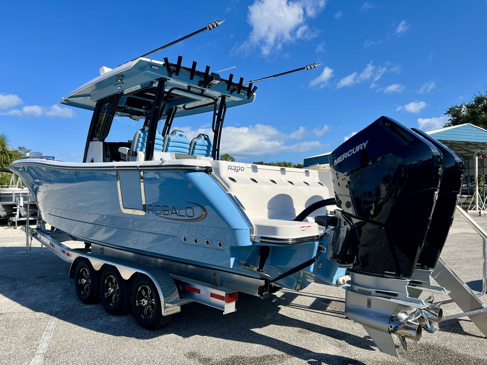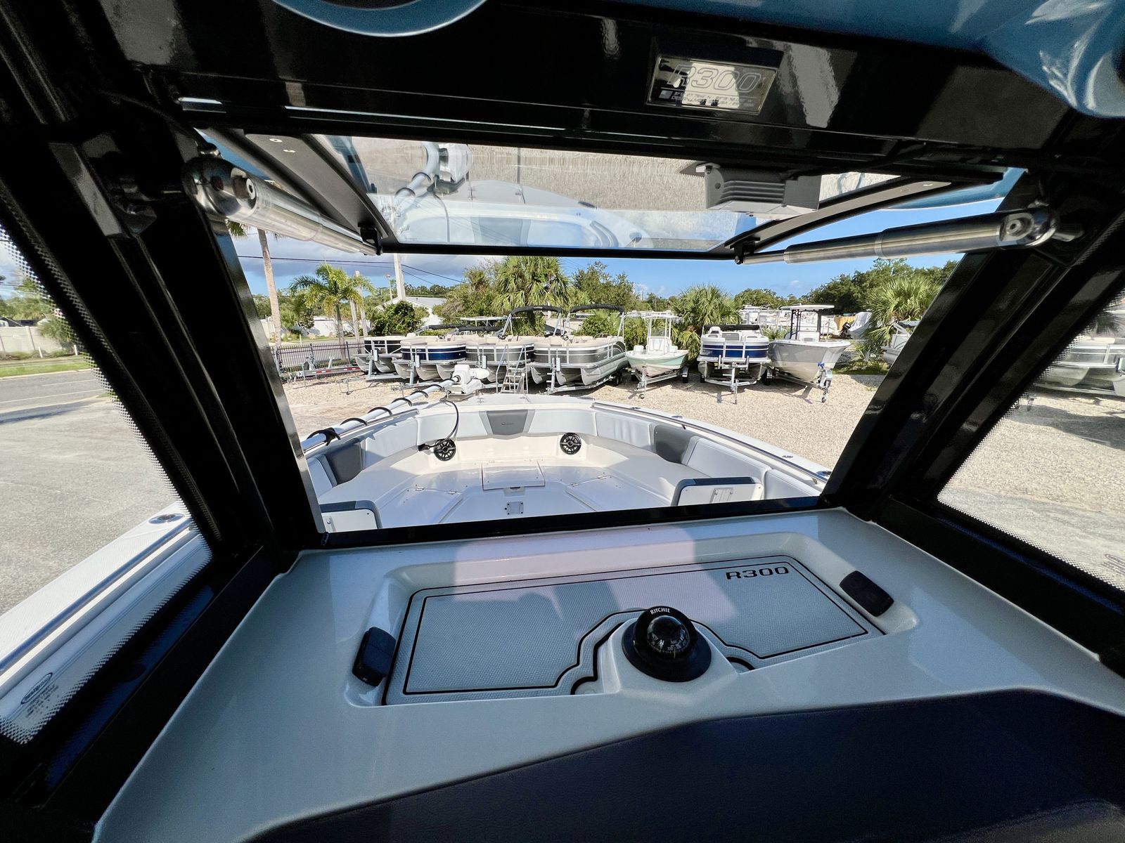 Whether you're trolling with hooks in the water or running through rough seas in search of a trophy catch, the all-new R300 center console is just the right balance of comfort and performance. Debuting with best-in-class performance thanks to its' Micheal Peters designed hull, the R300 also has amenities to make your time on the water more enjoyable. A triple-wide helm stand, an oversized hardtop with a skylight and a freshwater shower are just some of the highlights that make the all-new R300 so popular.