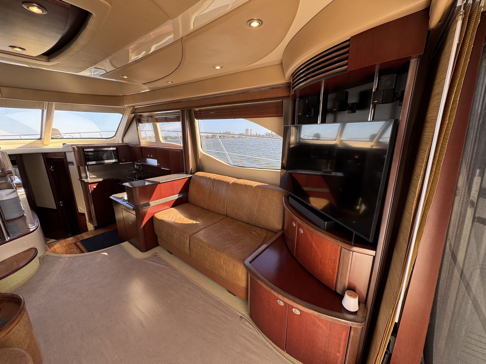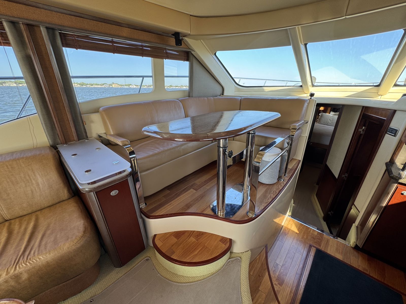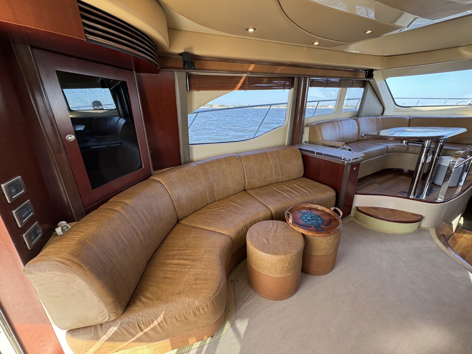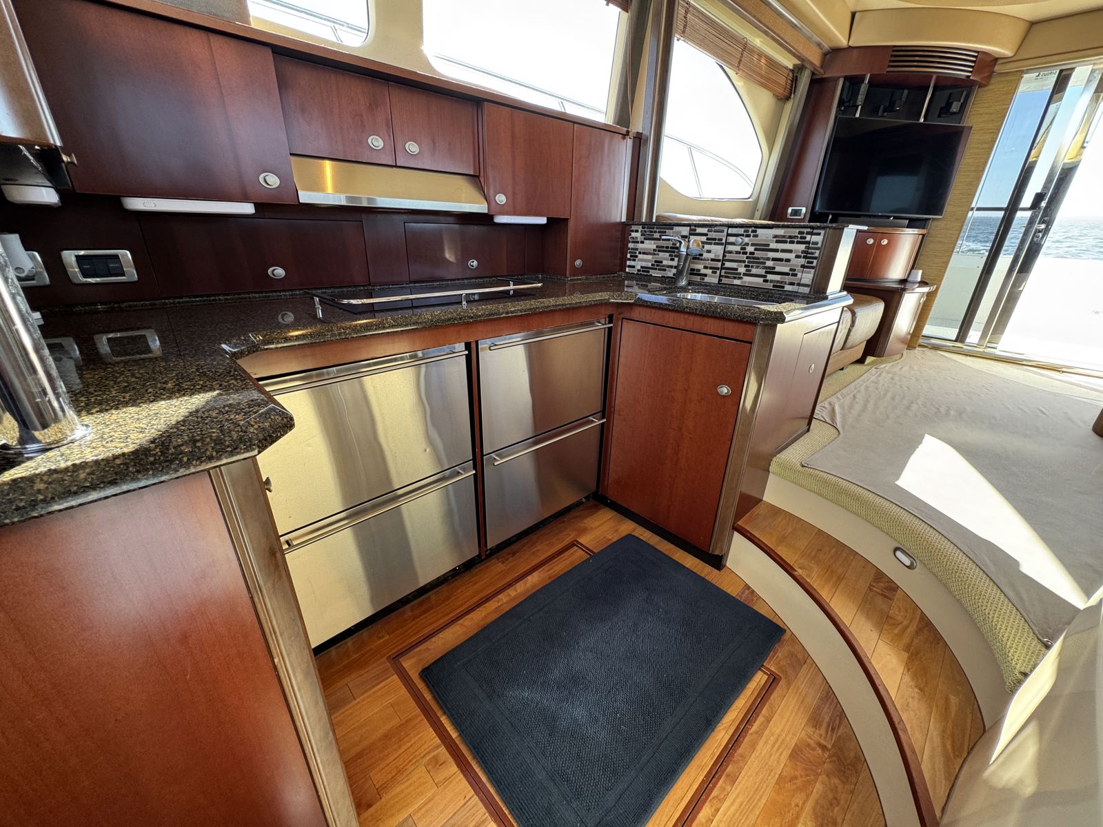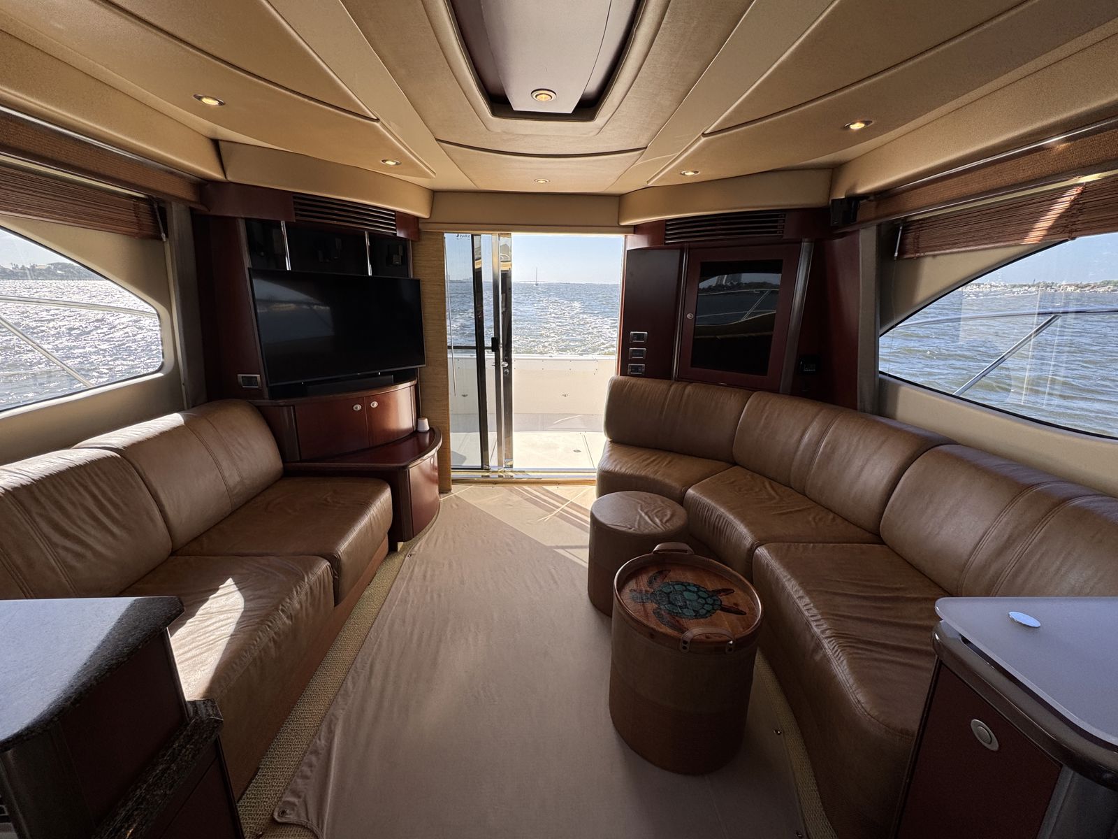 Sea Boss is a beautifully maintained 2005 Sea Ray 500 Sedan Bridge offering an exceptional balance of performance, comfort, and recent upgrades. Powered by twin Cummins QSM11 660HP diesels and a 13.5kW Onan generator, she delivers confident, reliable cruising. Her spacious, air-conditioned flybridge with ample seating and a wet bar is perfect for entertaining, while the bright salon features cherry cabinetry, Ultraleather seating, and large windows for a warm, open feel.