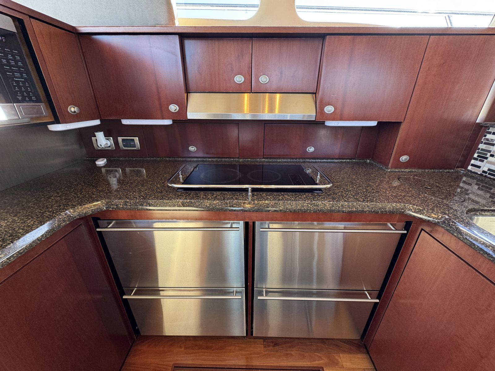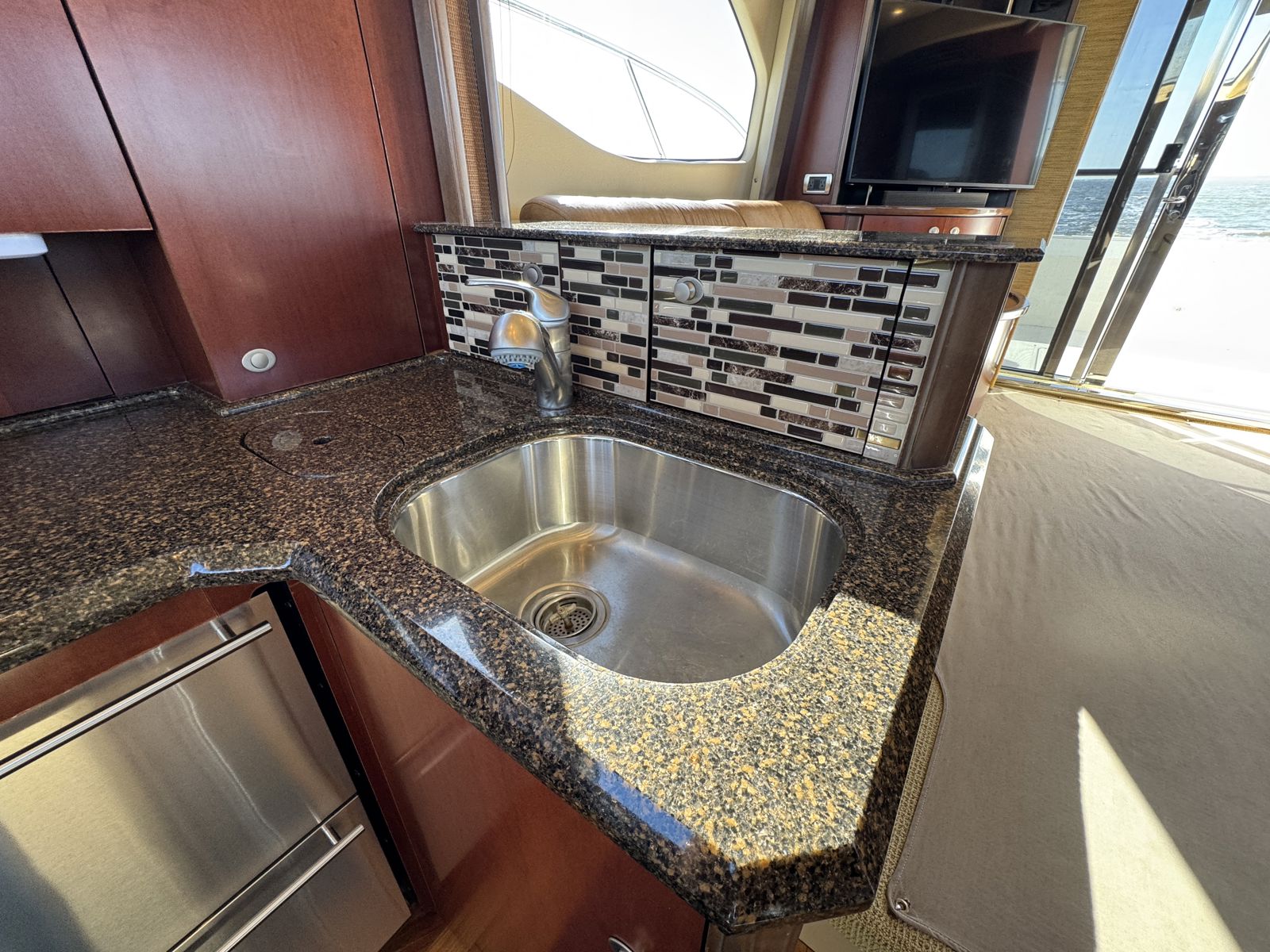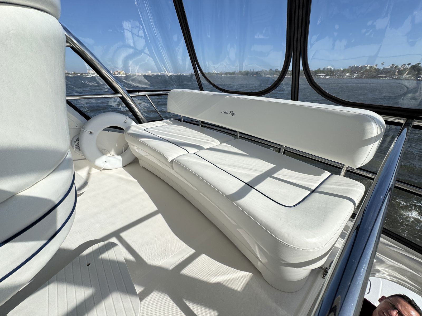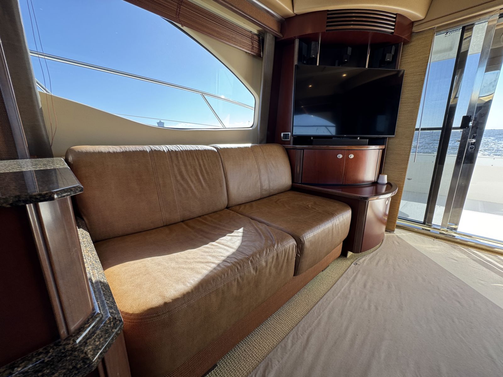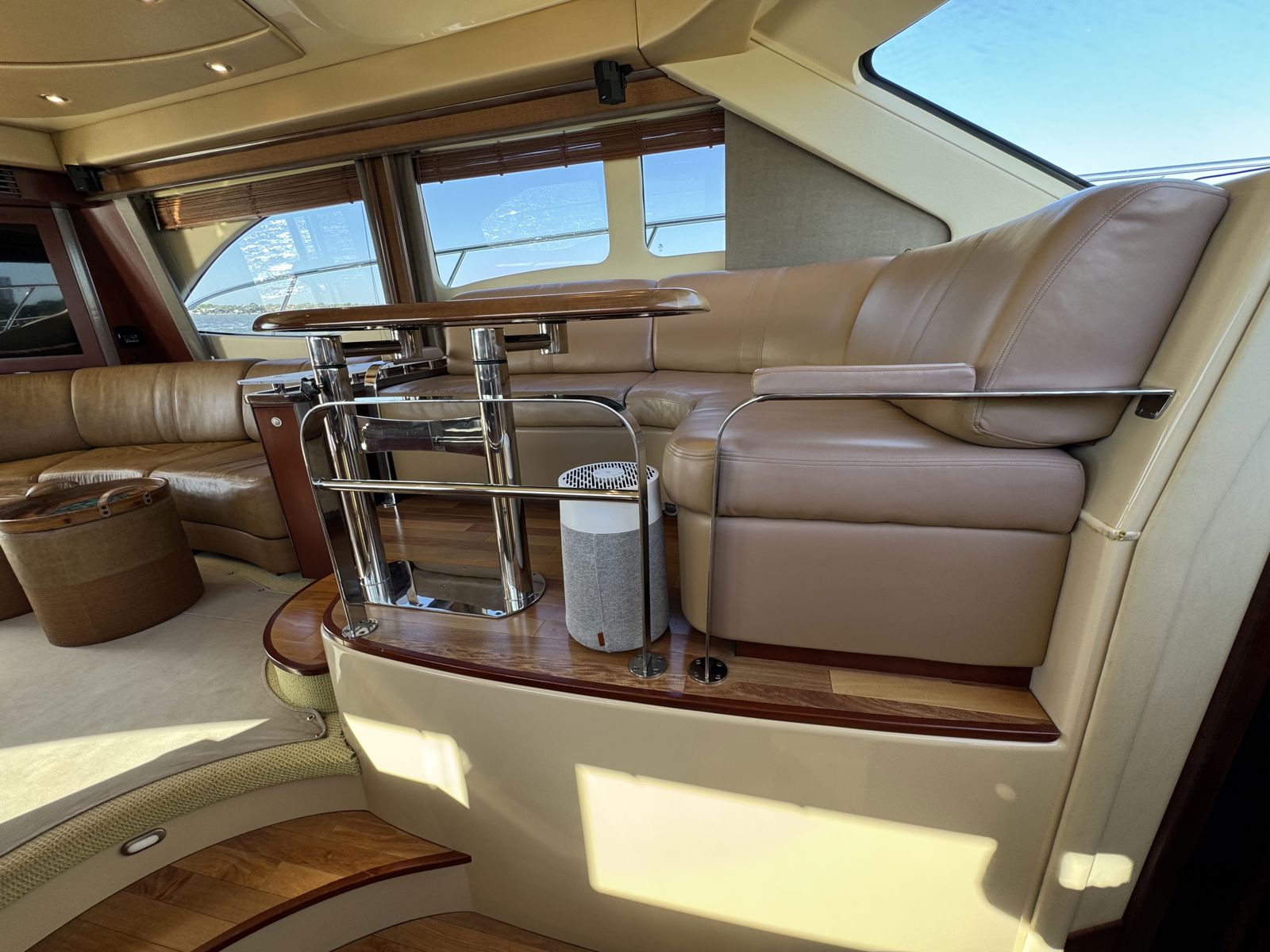 Sea Boss is a beautifully maintained 2005 Sea Ray 500 Sedan Bridge offering an exceptional balance of performance, comfort, and recent upgrades. Powered by twin Cummins QSM11 660HP diesels and a 13.5kW Onan generator, she delivers confident, reliable cruising. Her spacious, air-conditioned flybridge with ample seating and a wet bar is perfect for entertaining, while the bright salon features cherry cabinetry, Ultraleather seating, and large windows for a warm, open feel.