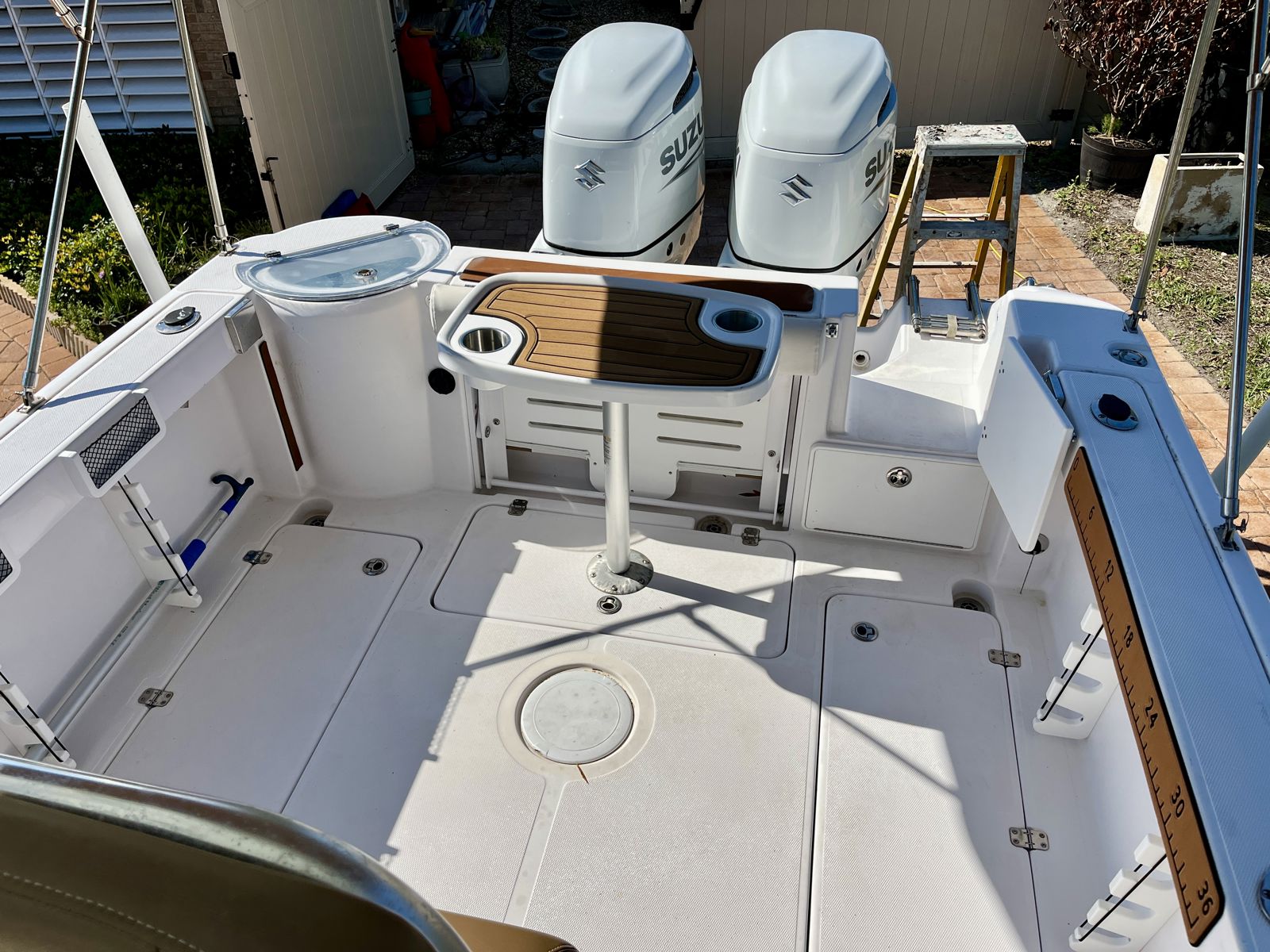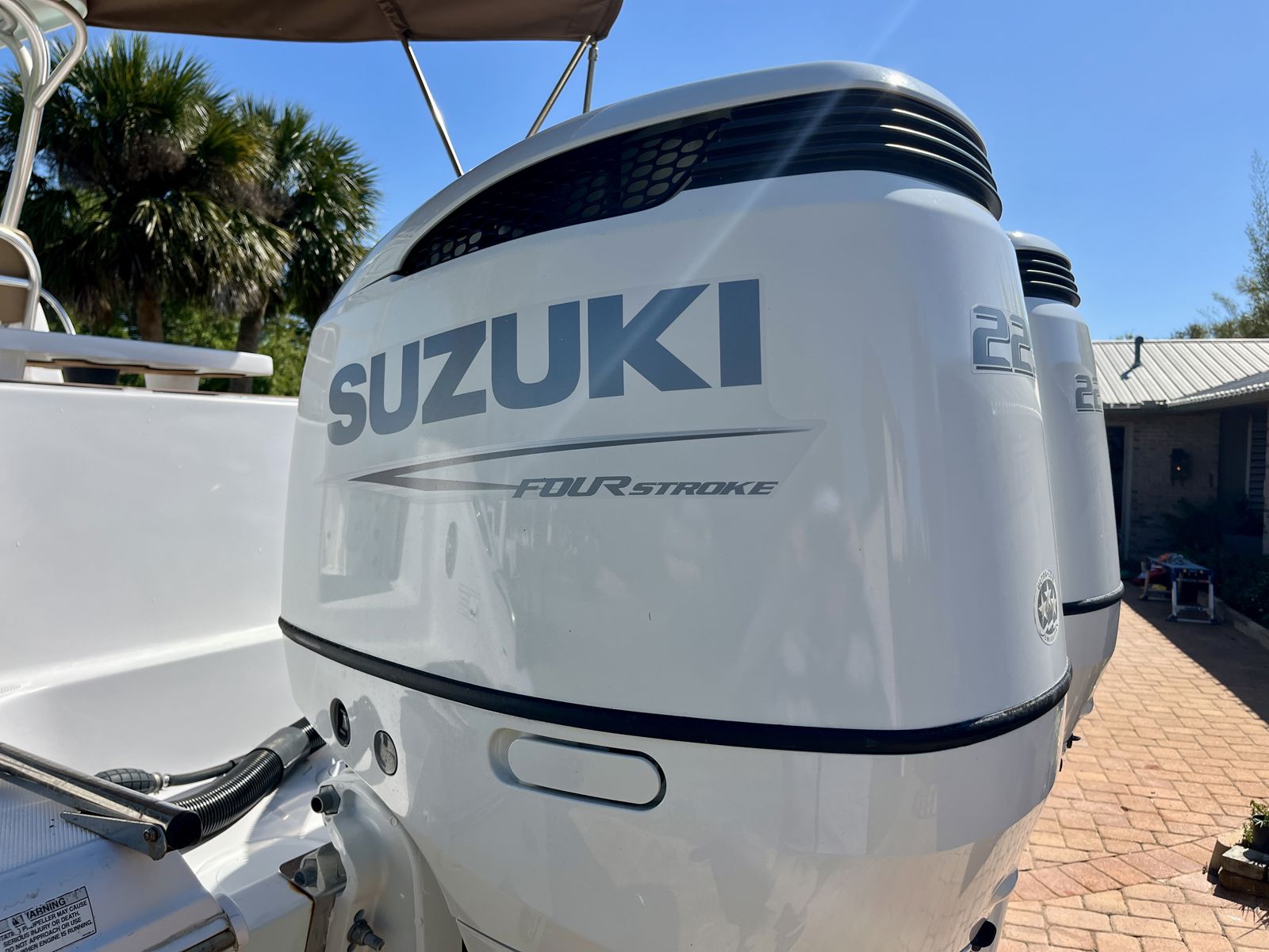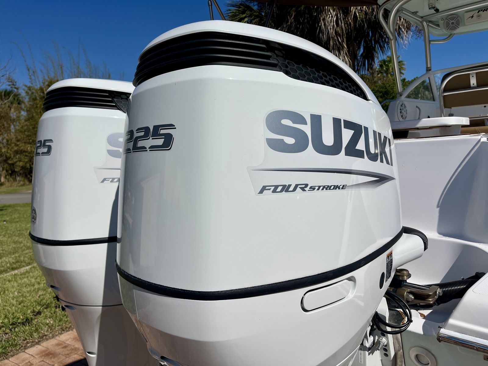 - Twin 225 Suzuki Outboards (62 hours) – Like-new power with smooth, quiet operation