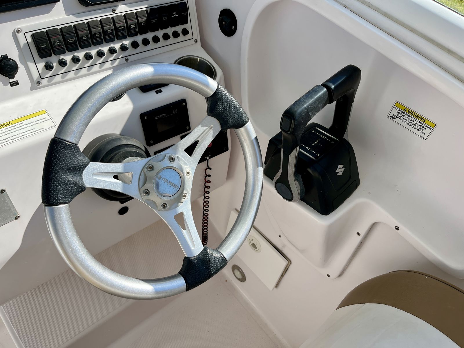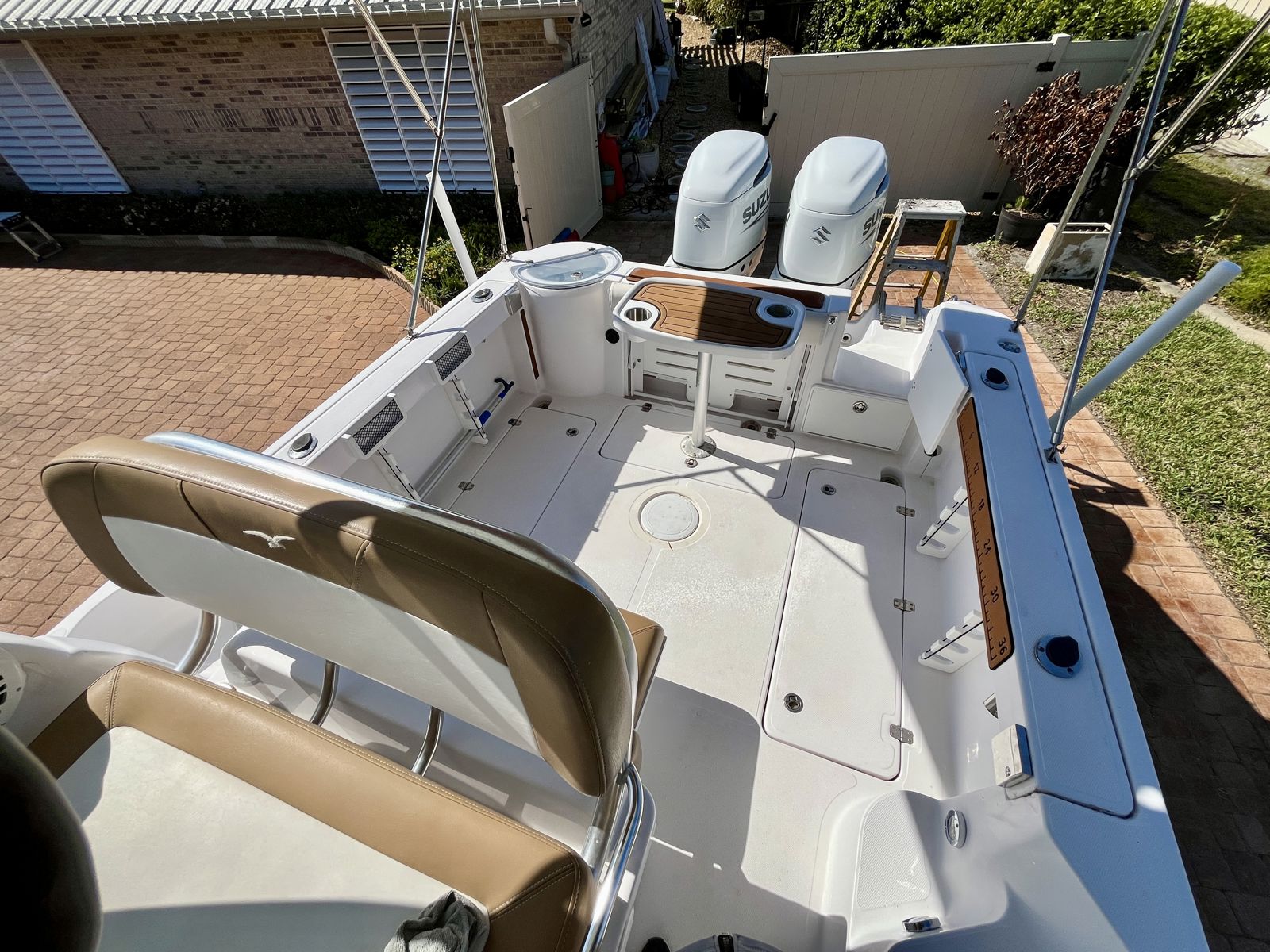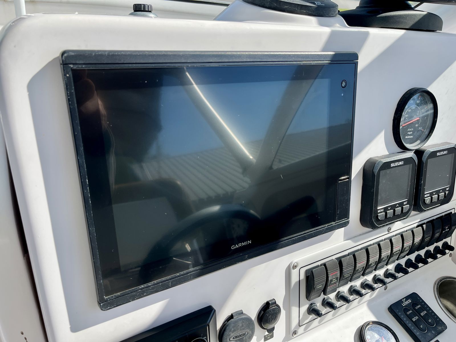- Twin 225 Suzuki Outboards (62 hours) – Like-new power with smooth, quiet operation